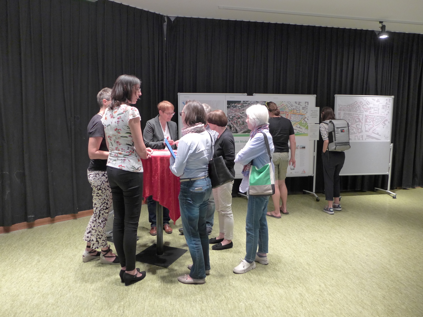 Im Januar/­Fe­bruar 2016 hat das Amt für Stadt­ent­wick­lung bereits eine Befragung der Wohnungs­ei­gen­tü­mer im Gebiet durch­ge­führt. Am Mitt­wo­cha­bend, den 6. April 2016 wurden im Bürgersaal erste ­Er­geb­nisse der vorbe­rei­ten­den Unter­su­chun­gen der Öffent­lich­keit vor­ge­stellt. Im Anschluss wurde an drei Stationen mit den an­we­sen­den Bürge­rin­nen und Bürgern Entwick­lungs­mög­lich­kei­ten ­dis­ku­tiert.